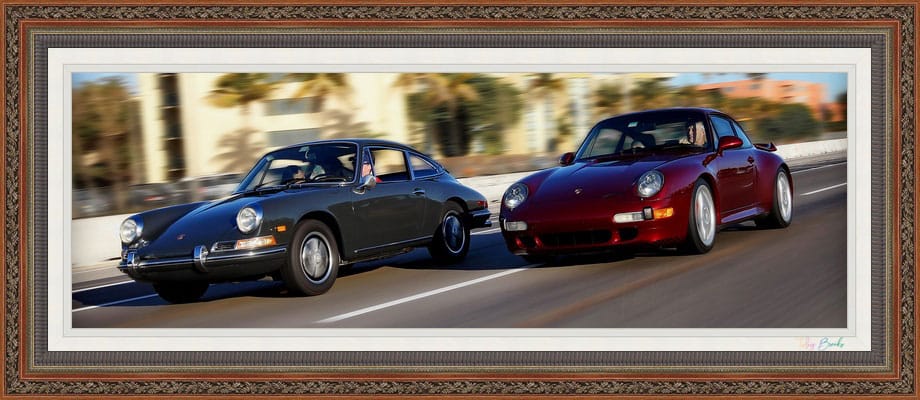 Feel the raw energy in two Porsche classics racing side by side—a duel of steel and speed.